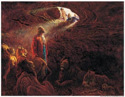 A pena seria joga-lo na cova dos leões,  e ele foi arremessado e entregue à morte, mas, segundo o livro, por uma intervenção Divina, ele foi tirado da cova da morte sem um arranhão sequer e em seguida, fora alçado ao ponto culminante da honra diante de todos que ouviram as maledicências, mentiras, calunias e maquinações contra ele.  Todos viram seu triunfo, menos seus inimigos que urdiram e tramaram contra, esses  foram destruídos, sendo lançados na armadilha que haviam preparado, e foram por fim, devorados pelos leões.   A história deles foi manchada pela vergonha e pelo opróbrio, enquanto a de Daniel percorre o mundo, até os dias de hoje.