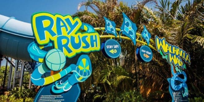 Em seguida os visitantes vão cair em um tobogã aberto em formato de arraia manta antes de terminar a aventura em um refrescante splash. A Ray Rush terá a altura mínima de 1,07 metros, sendo ideal para famílias com crianças e acomodará até quatro visitantes por boia.