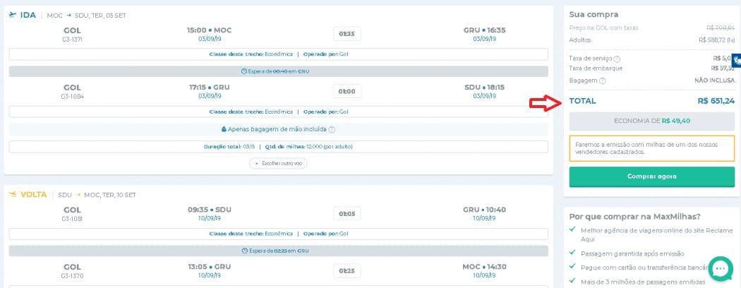 Passagens de ida e volta com taxas incluídas nos voos de Montes Claros