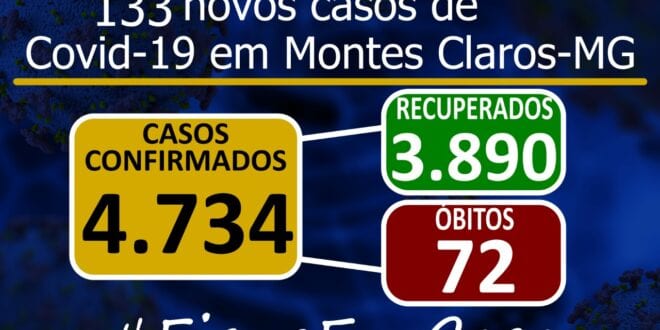 Montes Claros –  Já são , 4.734 casos confirmados. 72 óbitos por COVID-19. O setor de epidemiologia da Prefeitura de Montes Claros informa que mais 1 óbito e mais 133 novos casos novos foram confirmados,nesta terça-feira (25/08/2020).