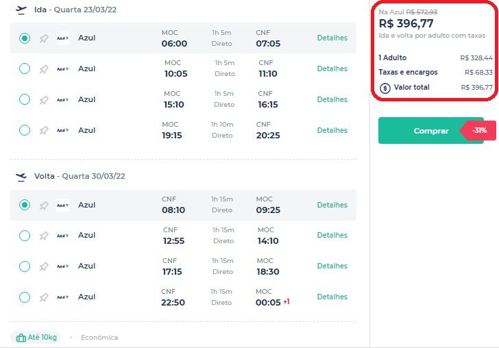 Para você que planeja viajar em março, as passagens aéreas para o trecho Montes Claros/Belo Horizonte estão custando apenas R$ 396 no voo direto da Azul. No mesmo período é possível ir para Uberlândia por R$499 e para São Paulo (Guarulhos) por R$506 nos voos da mesma companhia.