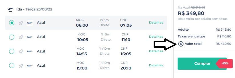 A oferta mais em conta é para a capital mineira. O voo é da companhia aérea Azul, para o mês de agosto. As passagens de ida e volta saem por R$ 460. O trajeto é feito sem escalas. Todas as taxas e encargos já estão inclusos.