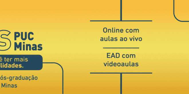 A PUC Minas oferta ainda pós-graduação nas modalidades presencial, em Belo Horizonte, e híbrida, onde a carga horária é dividida igualmente com disciplinas presencial, online ao vivo e EAD com videoaulas.