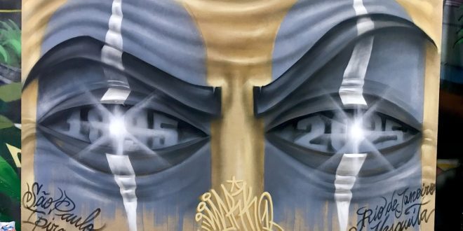 “Esse título remete às cores e à diversidade da tatuagem sobre seus muitos estilos, que unificam as pessoas como uma forma itinerante de arte”, diz Markone Tattograff, habituado a retratar o carnaval e o futebol em seu trabalho há 30 anos. “É um tema que exalta as cores dos estandartes das escolas de samba, dos times de futebol, da fauna e da flora, do pôr do sol visto do Arpoador e também da boemia”. Markone, que já fez várias artes no Rio, está pintando um painel dos campeonatos do Botafogo — Brasileirão e Libertadores da América — no Engenhão. Retrata os nomes dos jogadores campeões juntamente com a arte do mascote do time, o cachorro, no camarote Fire Zone.